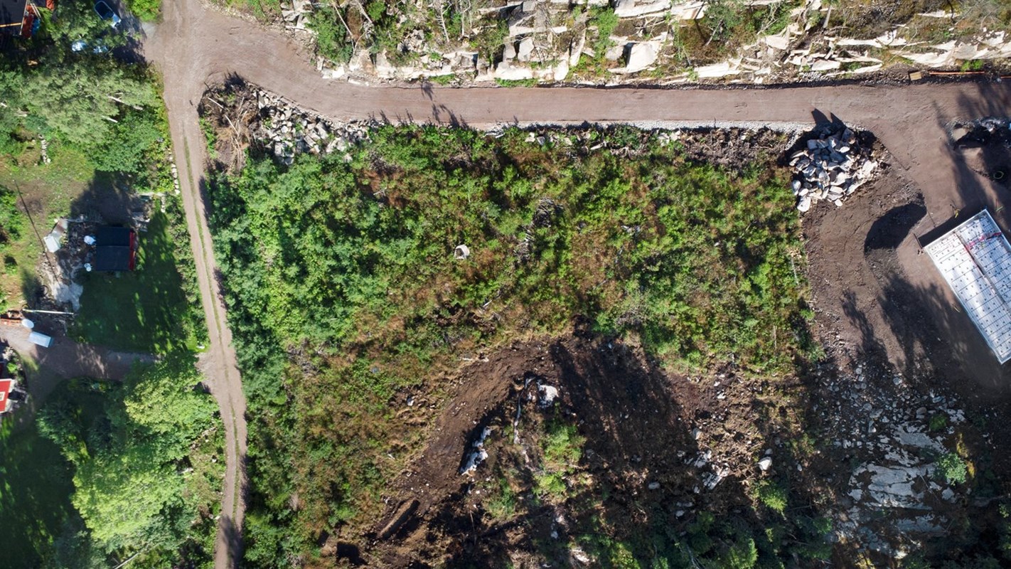 Du är välkommen att kontakta mäklaren för visning, men det går också bra att åka ut och titta på egen hand. Säljaren har märkt ut de ungefärliga gränsdragningarna med band. Idag finns en mindre väg där du kan köra upp för att titta. Ny väg kommer att anläggas i samband med byggnationerna, se illustrationsbild.
