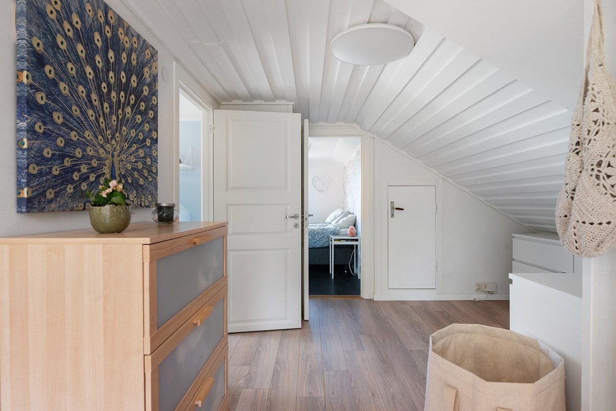 På entréplan möts du av en ljus hall med praktiskt klinker golv. Det fina köket är ljust och rymligt, modernt och lantligt på en och samma gång. Vardagsrummet går i vinkel och matplatsen nås direkt från köket. Från vardagsrummet öppnas upp mot den väl tilltagna altanen. På altanen ryms loungemöbeln, grillen och matgruppen, du rör dig här fritt omgärdat av grönska och utan insyn. På övre plan har du allrum med snedtak och utgång till balkong, två bra sovrum, klädkammare samt stort badrum som renoverades 2020. I den iordninggjorda källaren finns hobbyrum, snygg tvättstuga med SPA-bad i hörnet. Från källaren har du direktaccess till garaget huset, praktiskt den här tiden på året.