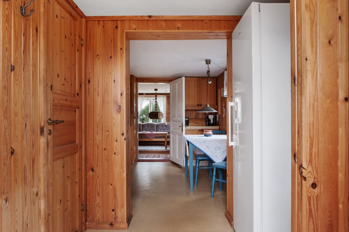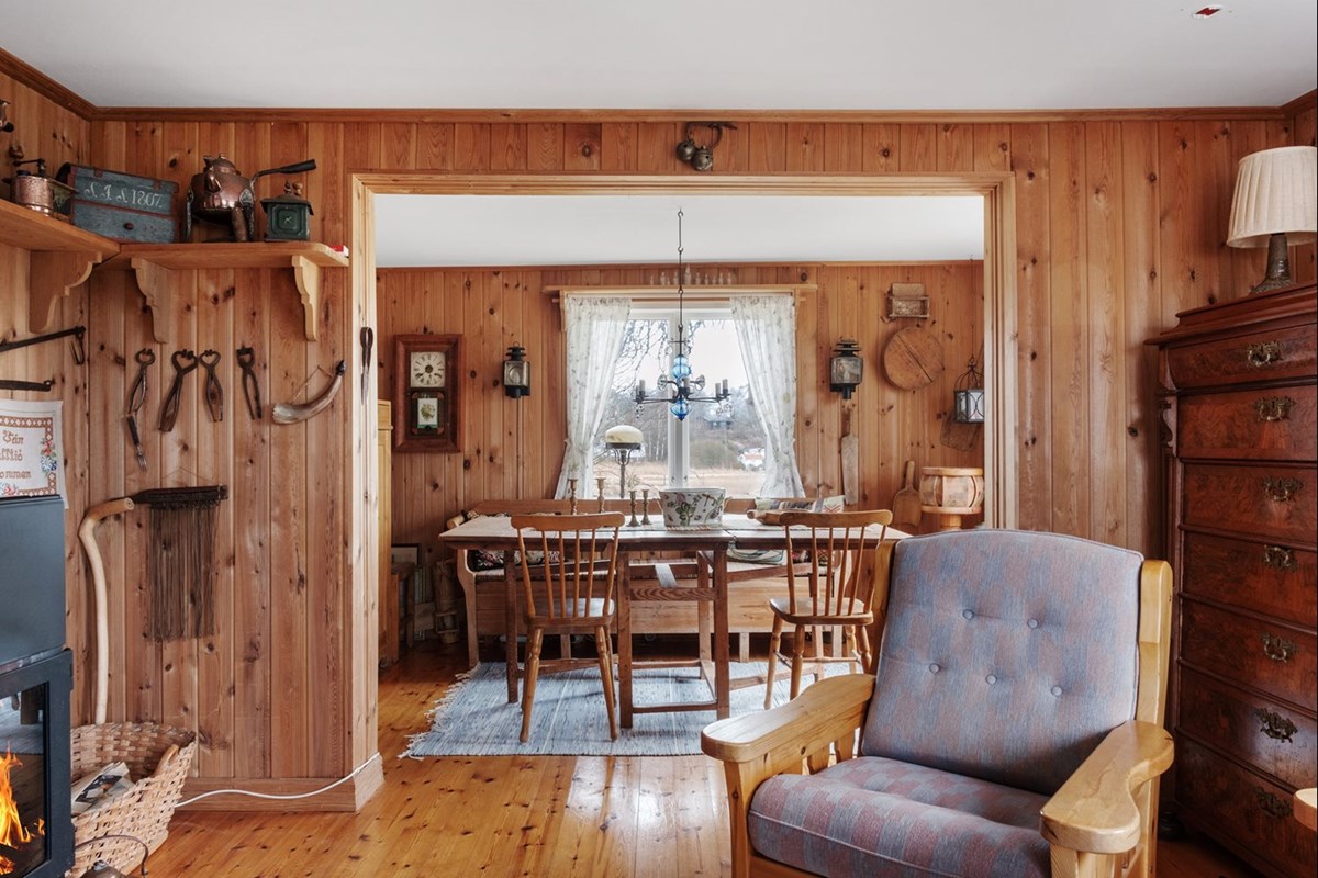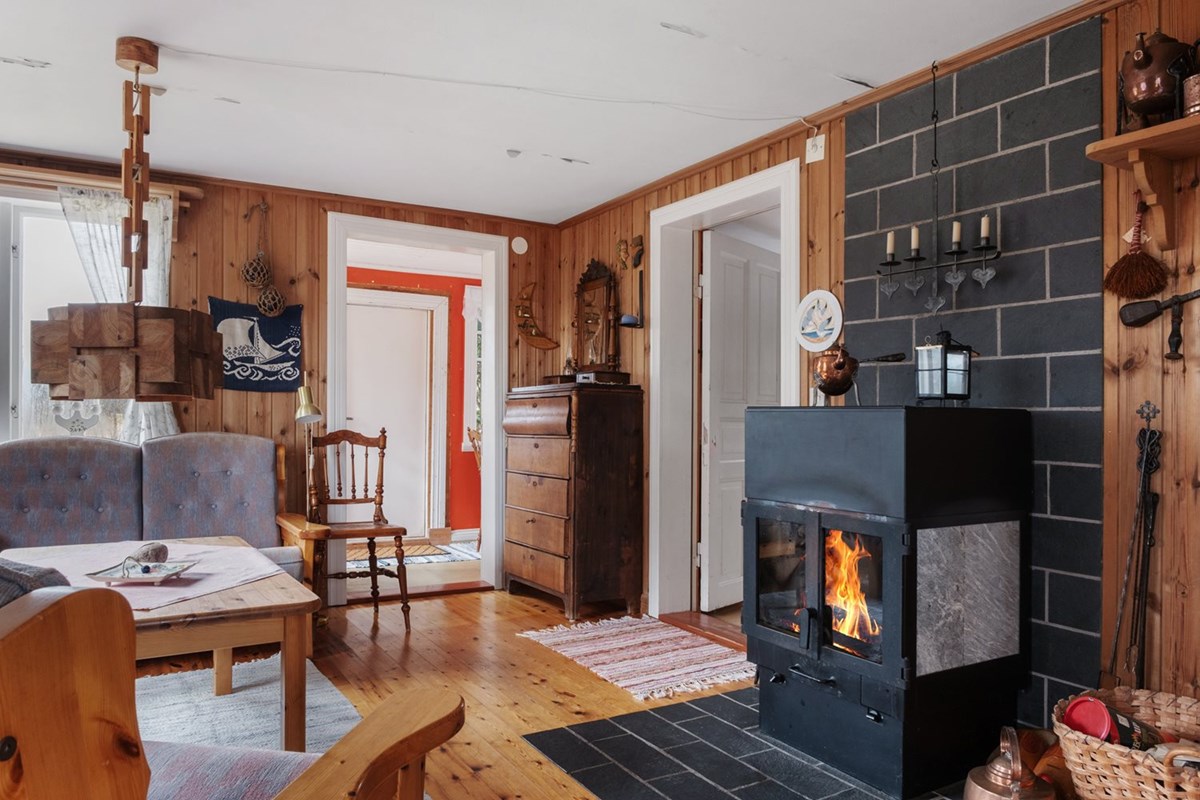 Invändigt möts du av en varm känsla med vackra träytor och en trivsam planlösning. Den centralt placerade kaminen sprider både värme och atmosfär under årets kallare månader och blir en naturlig samlingspunkt.