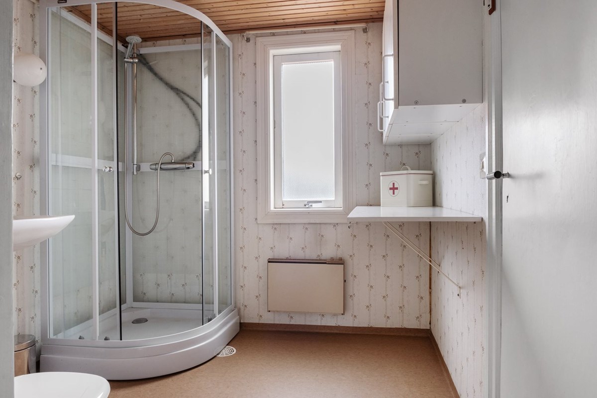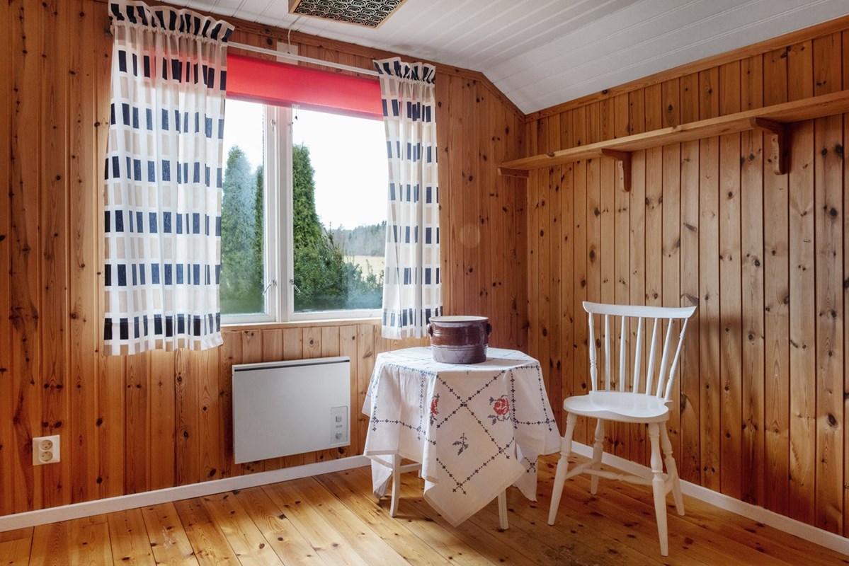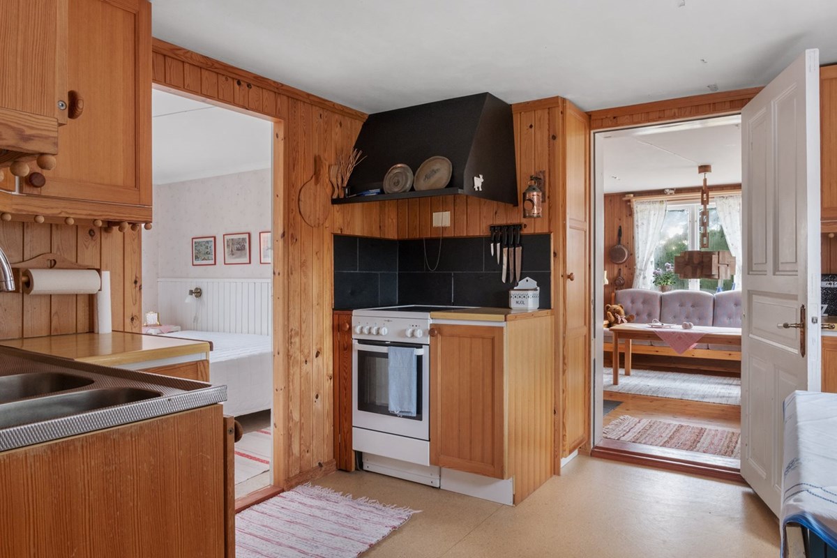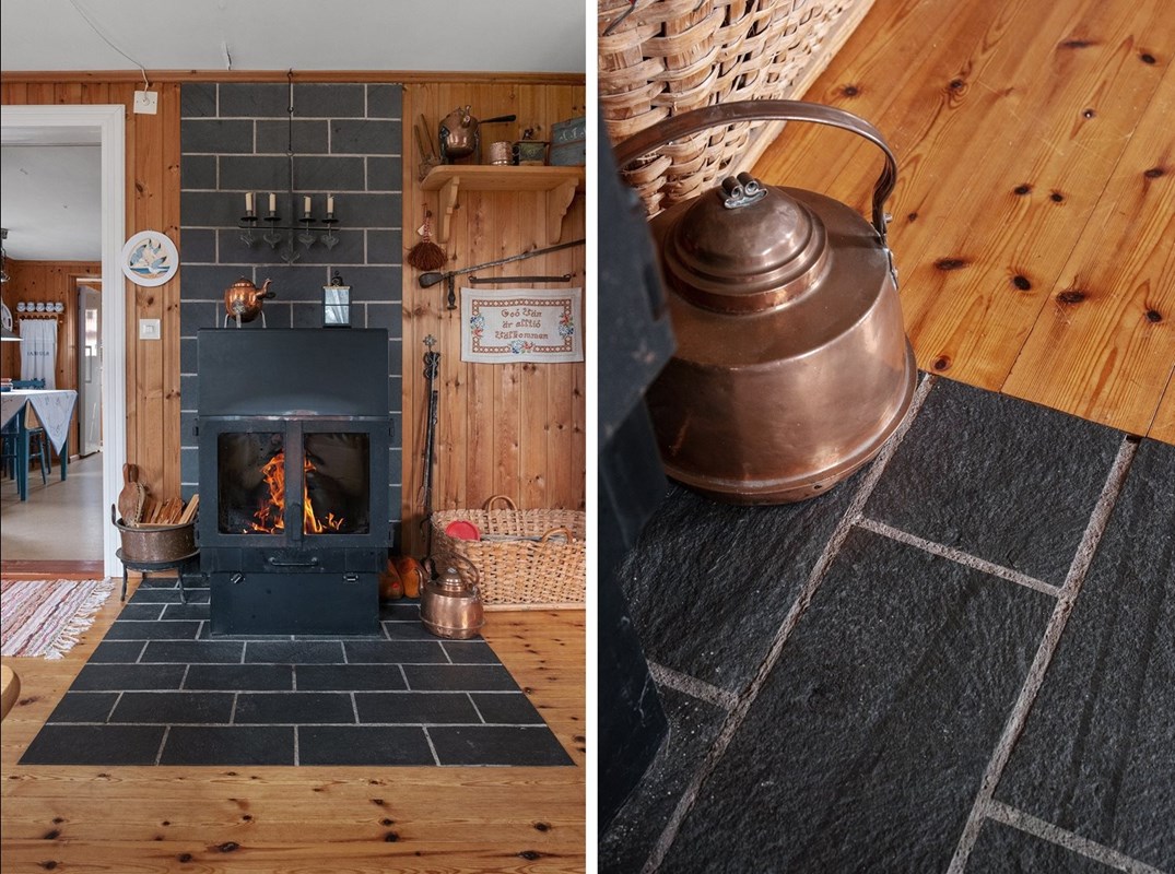 Invändigt möts du av en varm känsla med vackra träytor och en trivsam planlösning. Den centralt placerade kaminen sprider både värme och atmosfär under årets kallare månader och blir en naturlig samlingspunkt.