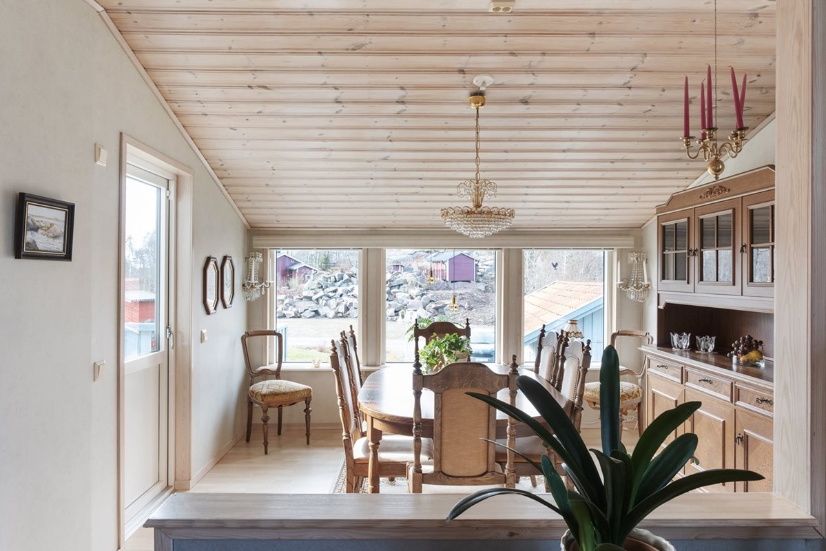På Gamla Lahällavägen 27 möts du av ett välskött enplanshus på en vacker naturtomt, där grönskande trädgård smälter samman med Bohusläns karaktäristiska granithällar.