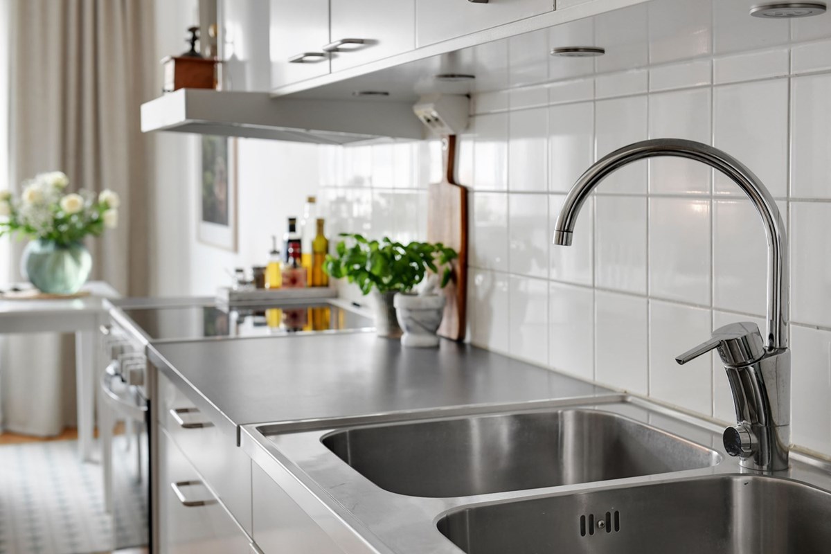 Vardagsrummet är öppet mot köket, ett praktiskt arbetskök med allt du behöver; kyl/frys, ung, spishäll, diskmaskin, dubbla hoar och bra skåps- och lådförvaring. I anslutning till köket ligger matplatsen som i sin förlängning går över till vardagsrummets sällskapsyta. Högt till tak, ljusa väggar och enhetlig fin ekparkett. De oerhört vackra höga fönstren skvallrar om tiden från när byggnaden uppfördes och ger rikligt med ljusinsläpp.