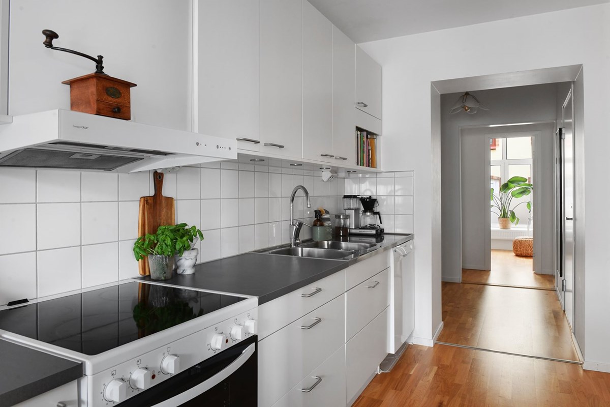 Planlösningen är otroligt bra! Trots sina ”bara” 72 kvm känns umgängesytan ljus och luftig, det största av sovrummen är rymligt och lyxigt och de två mindre rummen är både vackra och funktionella. Lägenheten ligger en halvtrappa upp men har ingen insyn, tack vare att fönstren som vetter mot gatan ligger i en nerförsbacke.
