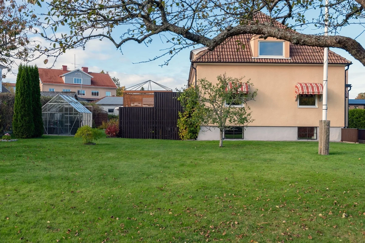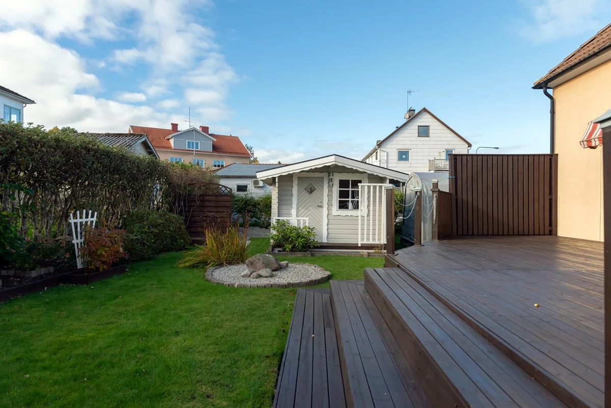 Från köket nås den härliga altanen som vetter mot husets baksida i västerläge. Här erbjuds en riktig oas, med insyns- och vindskyddat läge.