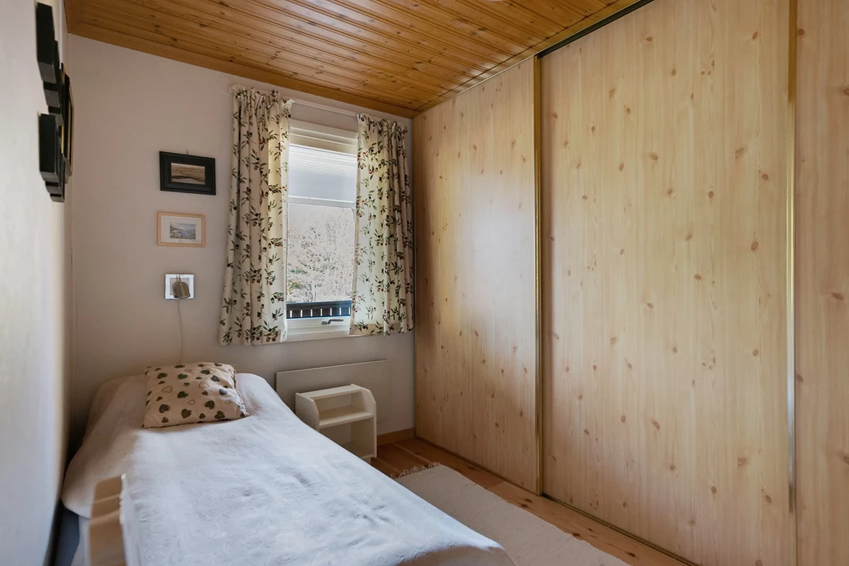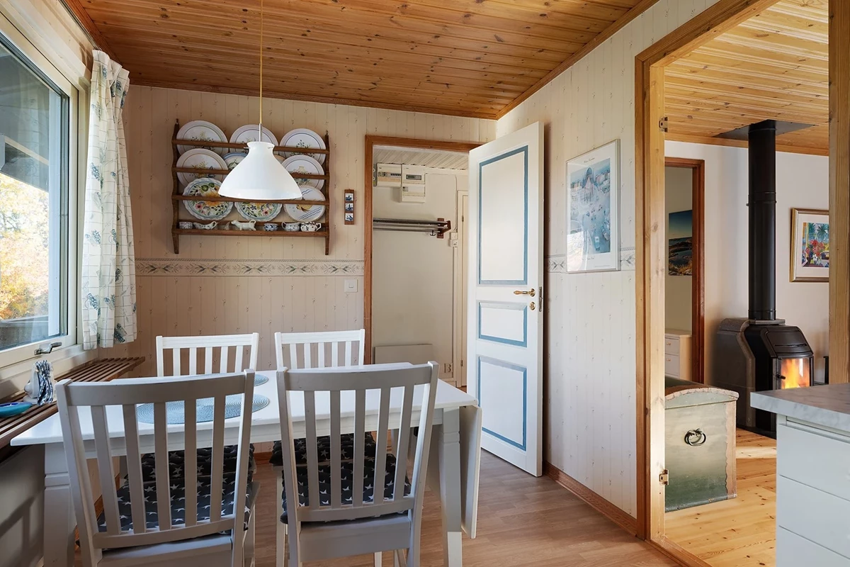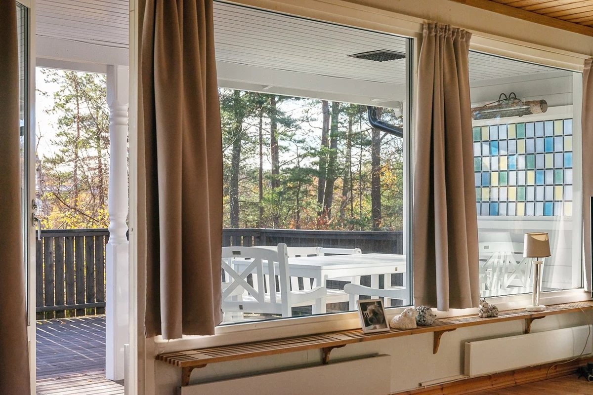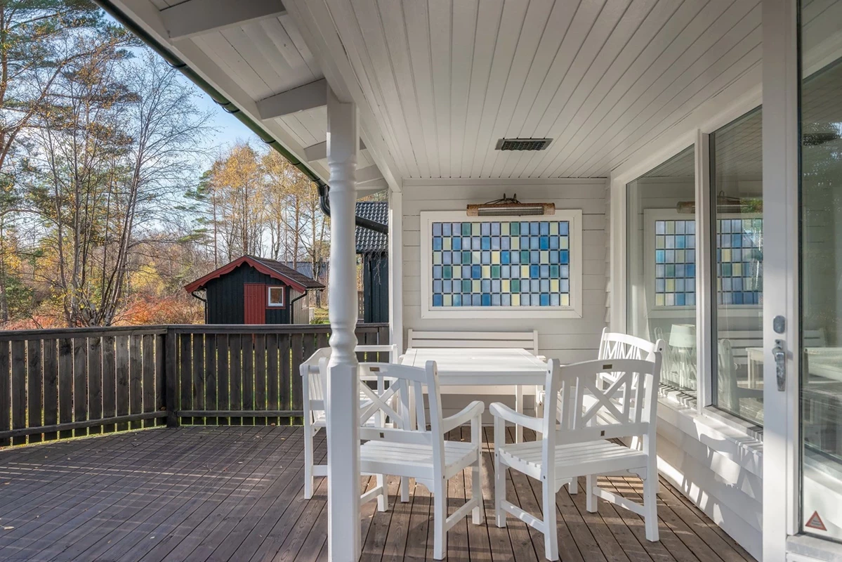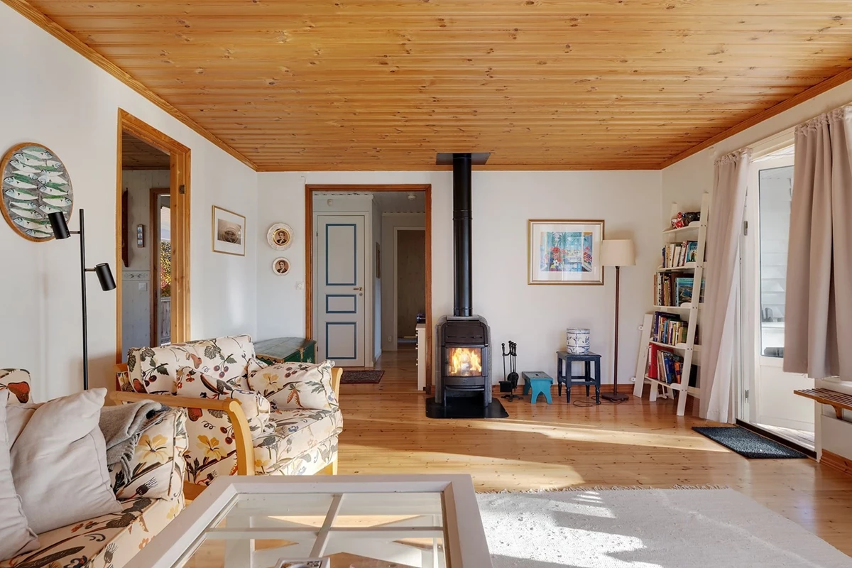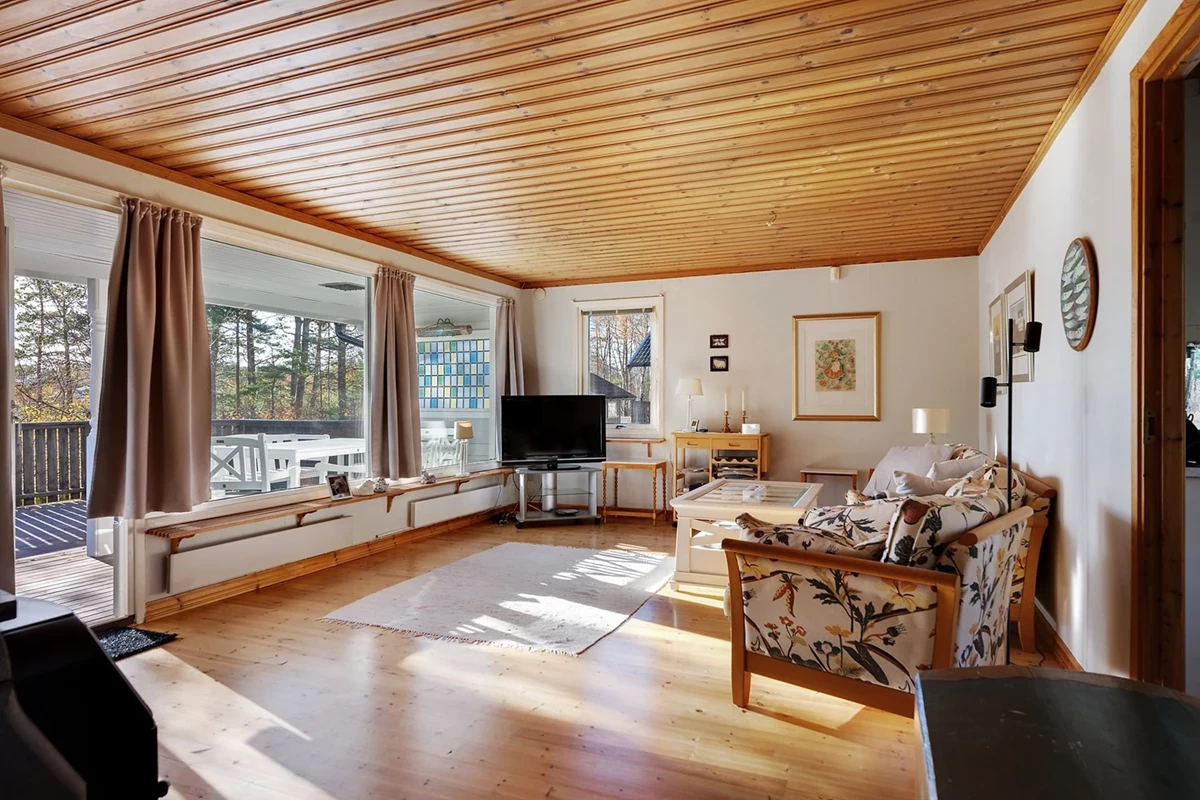 Bostaden har bra planlösning med sociala ytor och gott om plats för både familj och vänner. Vardagsrummet har braskamin och stora fönsterpartier som släpper in ljus från flera håll, en självklar samlingspunkt året runt. Härifrån nås även den stora altanen som bjuder på många soltimmar och fin kontakt med naturen.