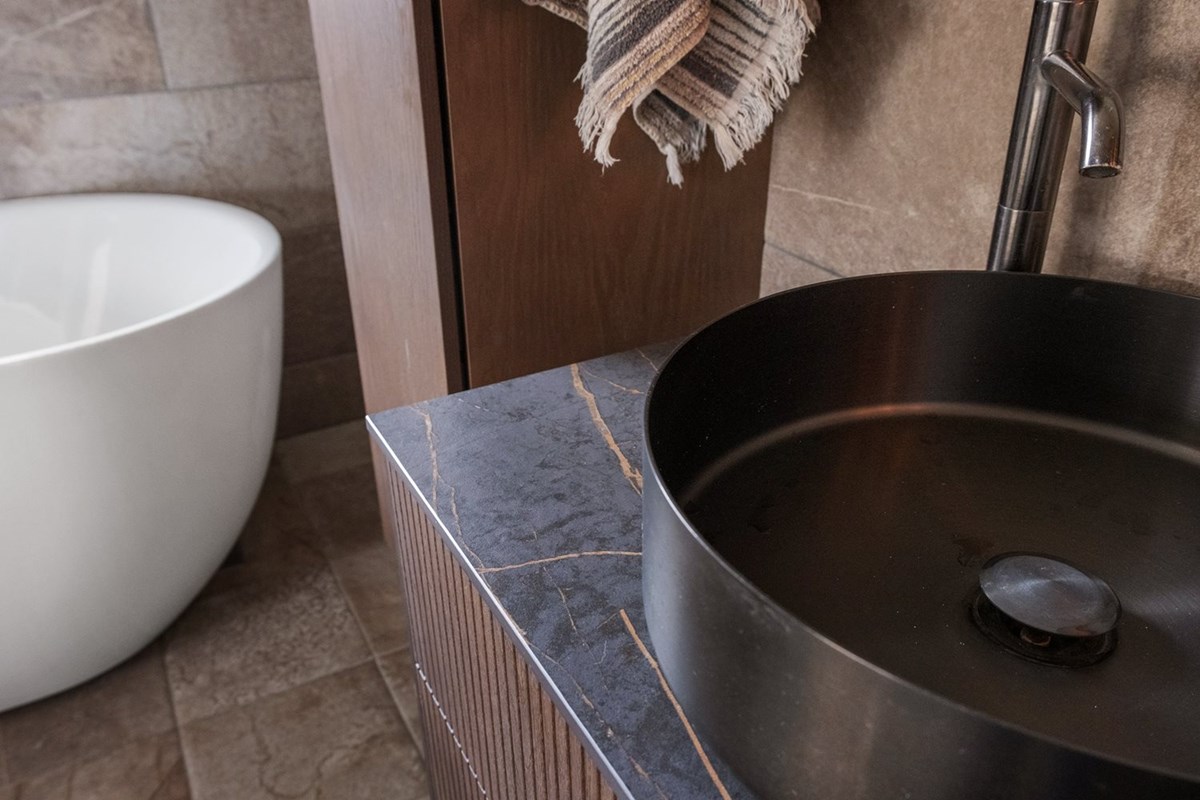 Redan vid första intrycket märks det att detta inte är ett standardboende. Här finns en känsla av lugn och kvalitet som är svår att återskapa, en balans mellan det rustika och det stilrena där material, färger och ljus samverkar på ett naturligt sätt.