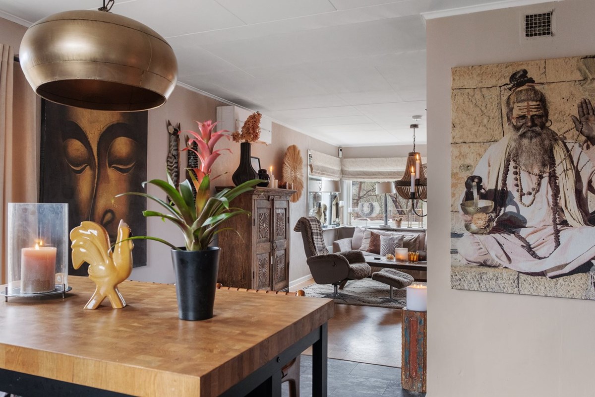 Mitt i det charmiga stenhuggarsamhället Rixö ligger denna hemtrevliga och rymliga villa med högt läge. Här har nuvarande ägare tagit ett klassiskt hus och varsamt fört det in i en modern tid, utan att tappa det som gör det genuint. Resultatet är ett hem med karaktär, värme och en tydlig röd tråd i varje val som har gjorts.