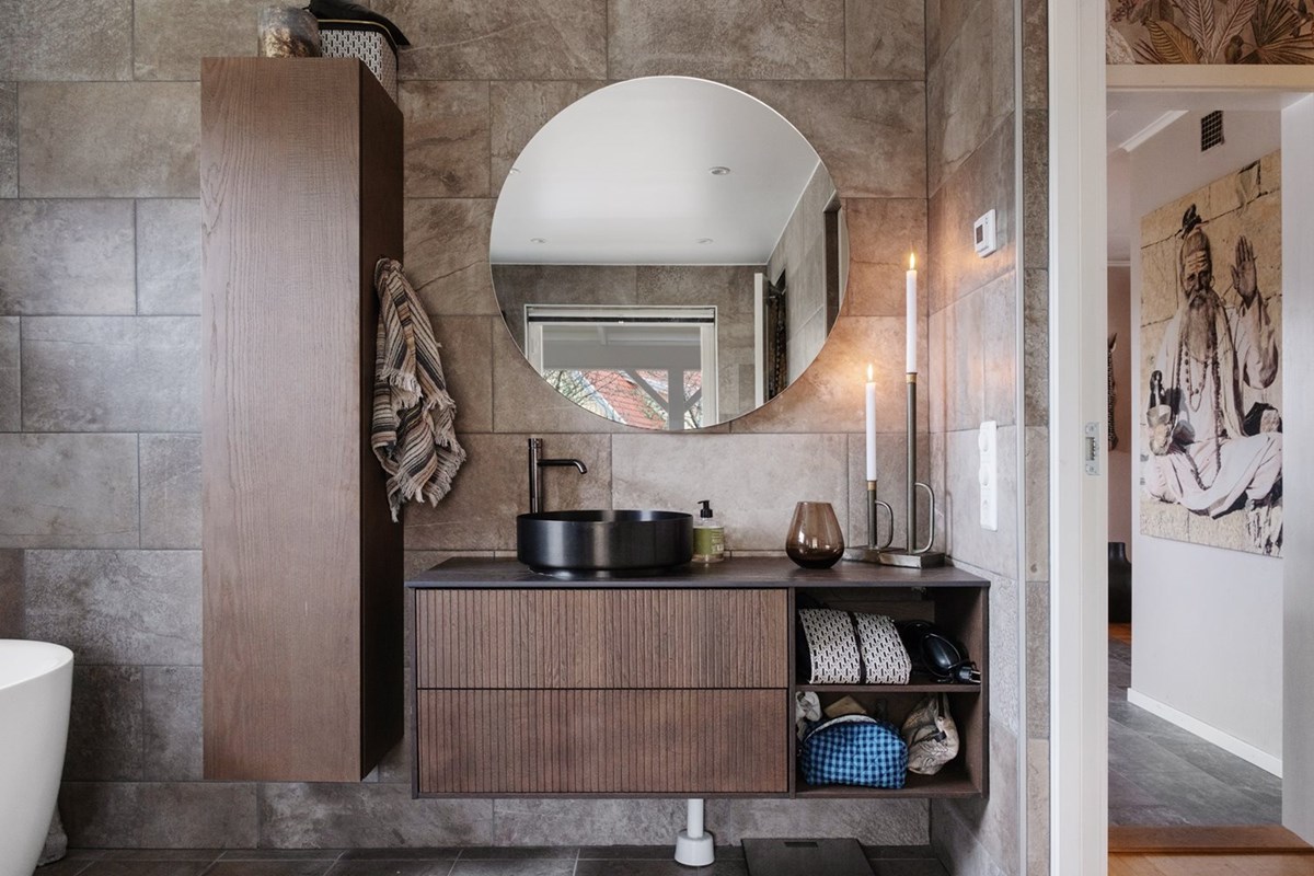 Samtidigt finns det en tydlig tanke kring det privata. Rummen är placerade så att man kan dra sig undan när man vill, utan att tappa närheten till resten av huset. Det skapar en trygg och harmonisk helhet, oavsett om man bor här själv, som par eller med familj.