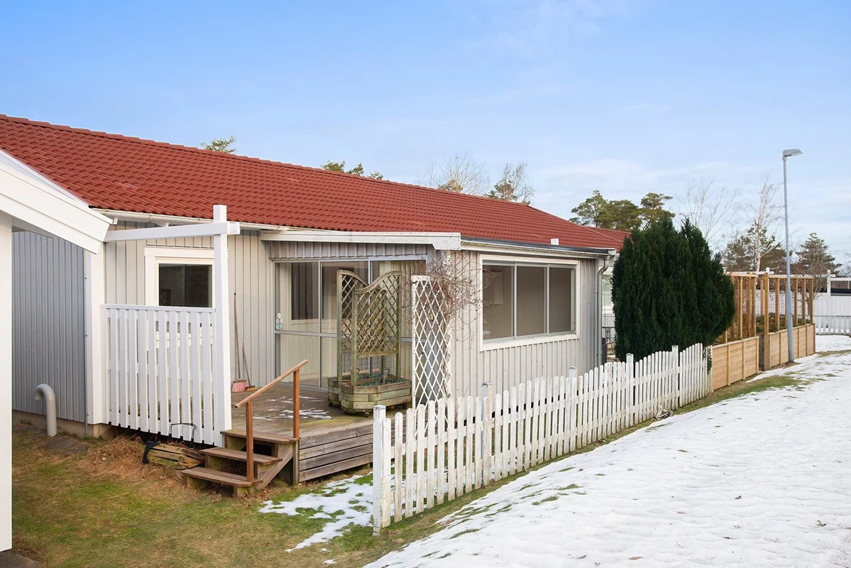 Välkommen till ett trivsamt och lättskött boende med radhuskänsla i centrala Brastad.