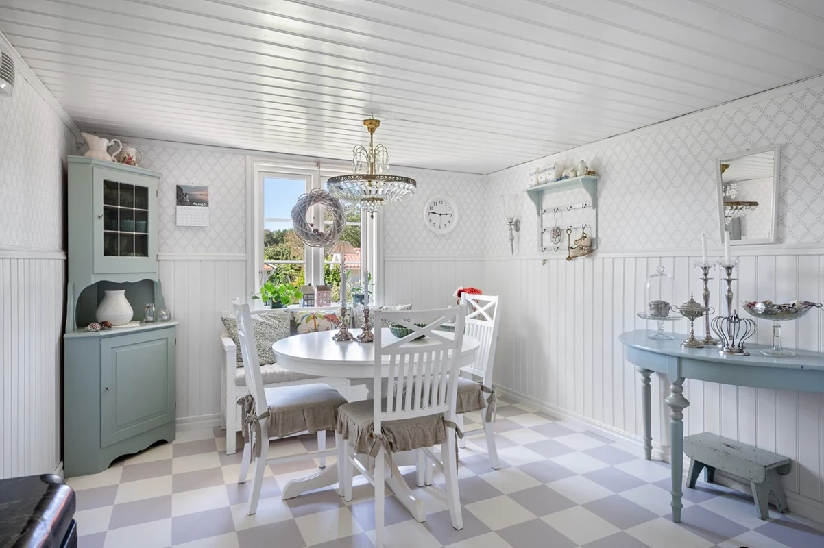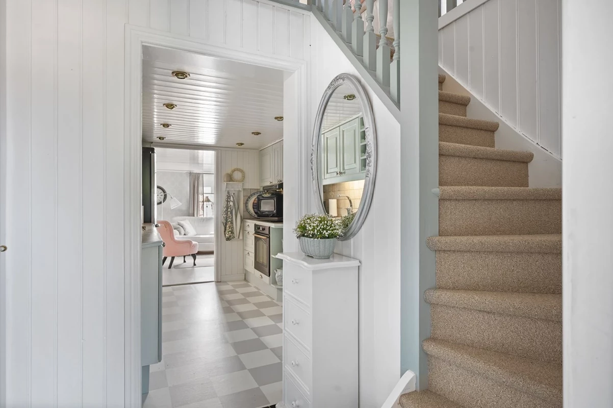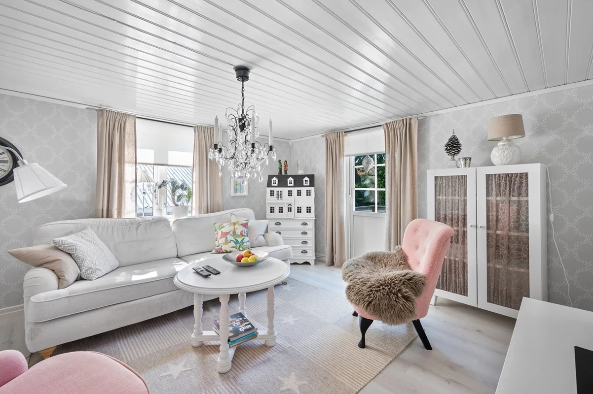 Lantlig charm, vackra snickerier, spröjsade fönster, pärlspont och spegeldörrar är genomgående i hela bostaden. Samtliga rum är ljusa och har vackra ytskikt, det är lätt att falla pladask.